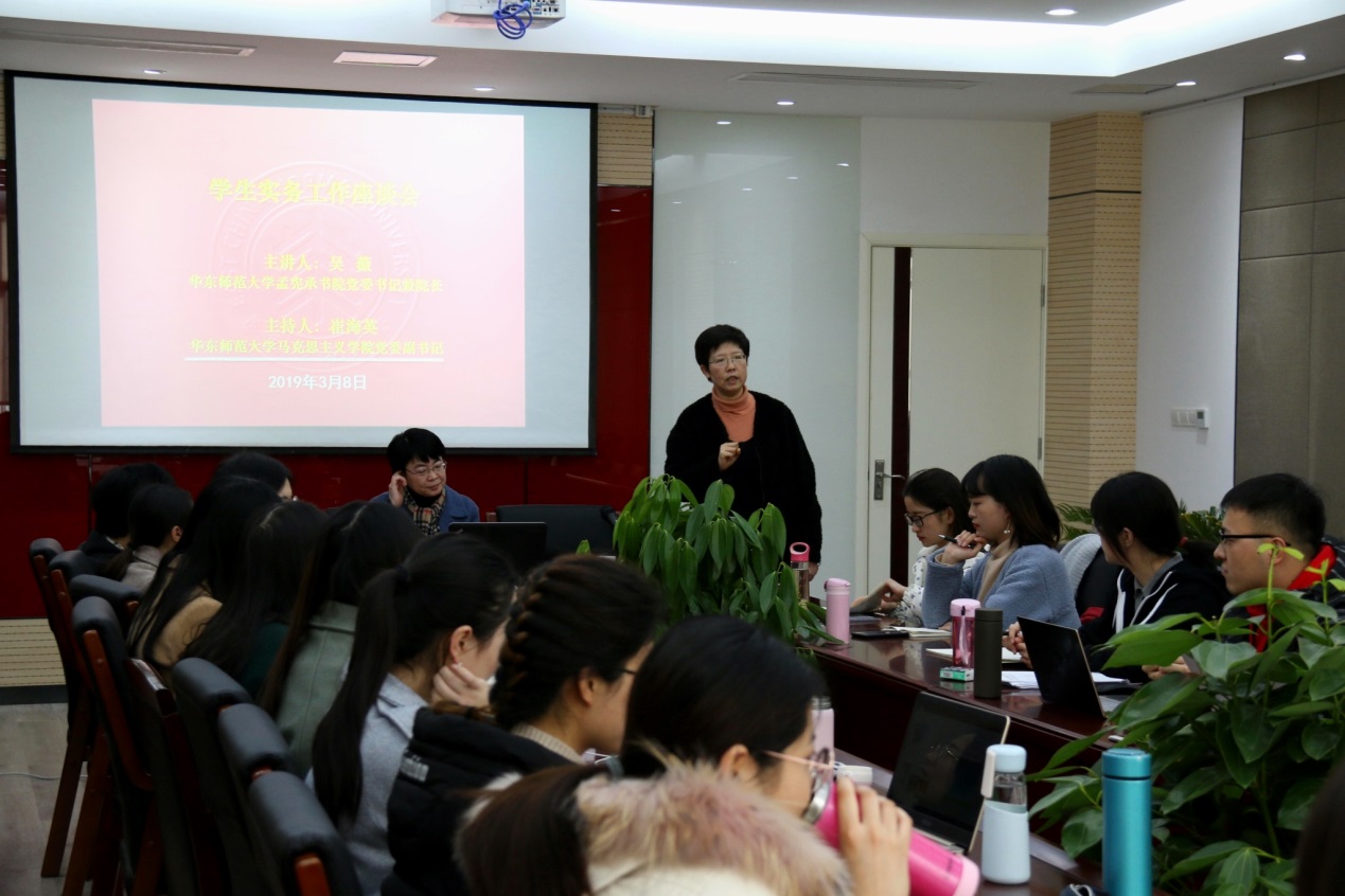 为了使同学们充分了解就业情况,更好地进行职业规划,2019年3月8日上午,我院于法商北楼225举办了学生实务工作座谈会,邀请我校孟宪承书院吴薇院长担任主讲人。座谈会由学院党委副书记崔海英主持,学院部分研究生参加了此次座谈会。